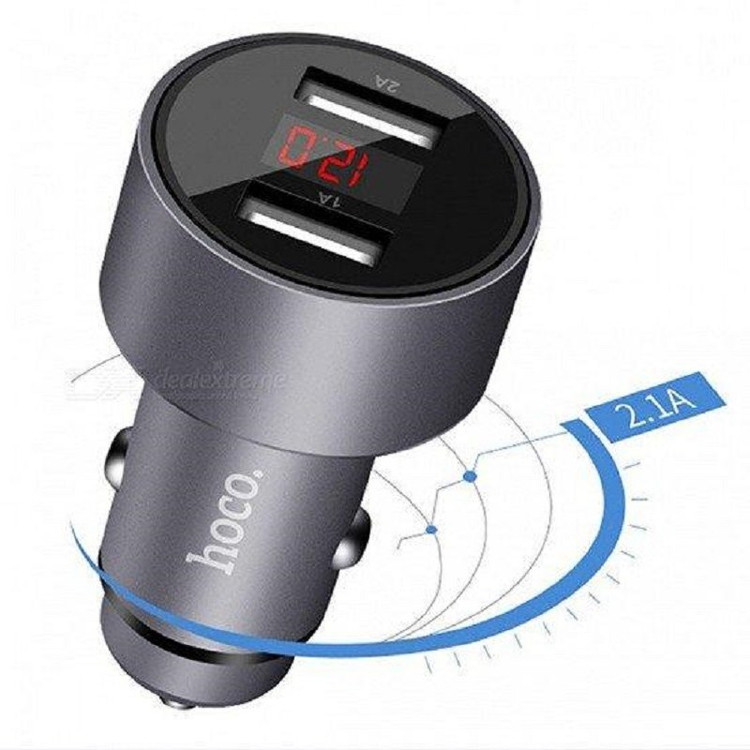 شارژر فندکی خودرو برند هوکو دو پورت usb و صفحه نمایش led