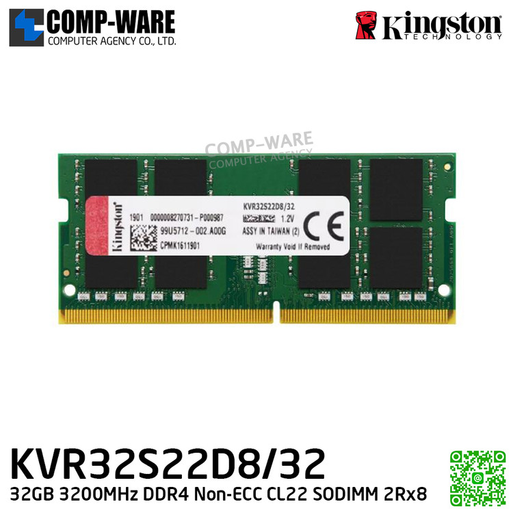 Kingston KVR32S22D8/32 32GB 3200MHz DDR4 Non-ECC CL22 SODIMM 2Rx8 - Lifetime Warranty - Memory Module - RAM