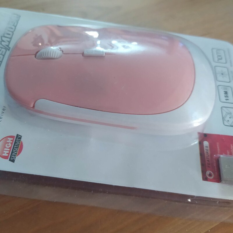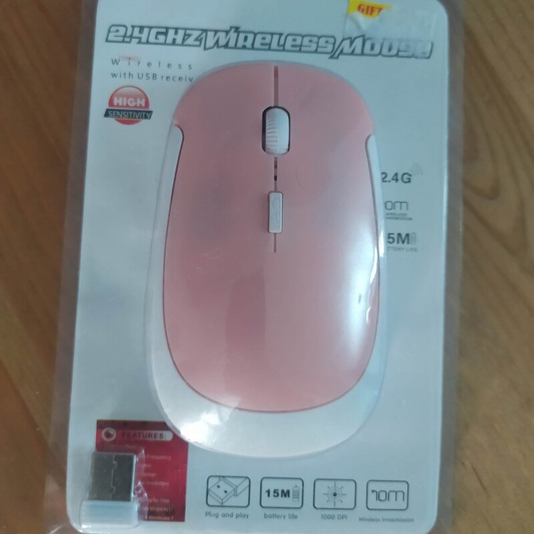ماوس بی سیم رنگ صورتی و سفید با برد بالا و کم مصرف