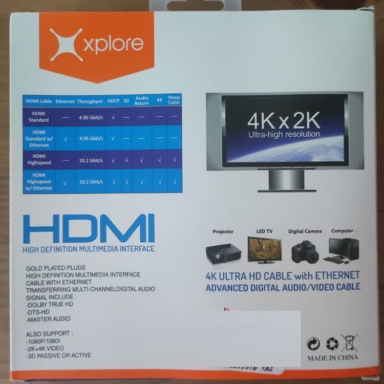 کابل اچ دی ام آی HDMI CABLE برند اکسپلور شیلد دار کیفیت عالی 3 متری 4K