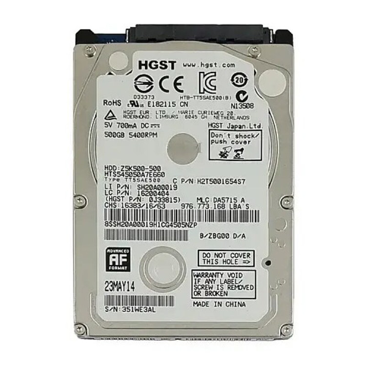 هارد HDD لپ تاپ 500 گیگابایت HGST Sata 5400RPM شش ماه گارانتی