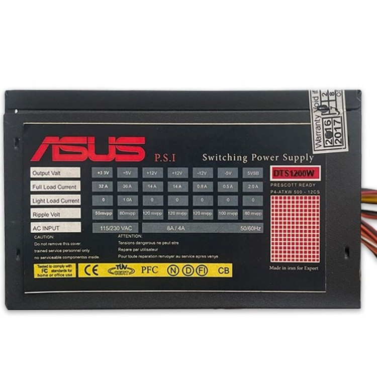 پاور Asus DTS 1200W فن بزرگ 24 پین با برچسب پلمب